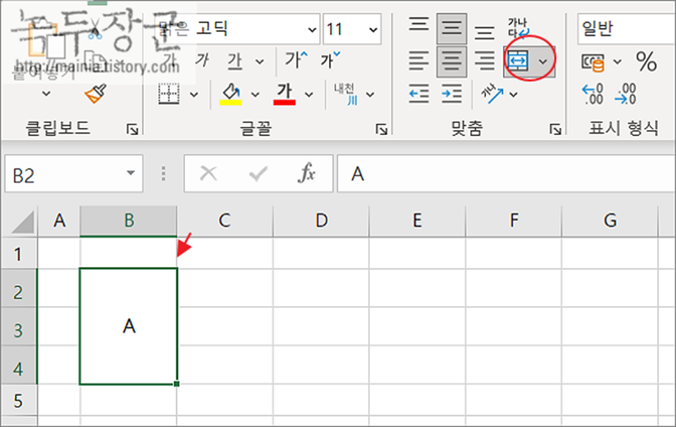 ▼ 다음 가로 방향으로 병합하는 방법입니다. 가로 방향은 채우기의 양쪽 맞춤이 되지 않습니다. 첫 번째는 가로 병합은 클립보드를 이용하는 방법입니다. 상단 클립보드 그룹에 화살표를 클릭해서 왼쪽 사이드에 설정창을 띄웁니다.