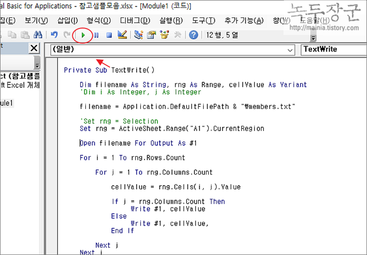 | ※ 아래는 참고하면 좋을 만한 글들의 링크를 모아둔 것입니다. ※ ▶ 엑셀 Excel VBA 개발을 위한 개발 도구 탭 추가하기 ▶ 엑셀 VBA 매크로 디버깅, 디버그 코드 분석하기 ▶ 엑셀 VBA 행, 열 삭제 및 추가하기 ▶ 엑셀 VBA 셀 참조하는 여러가지 방법 ▶ 엑셀 VBA 시트에 있는 내용을 파일, 텍스트로 출력하기 |