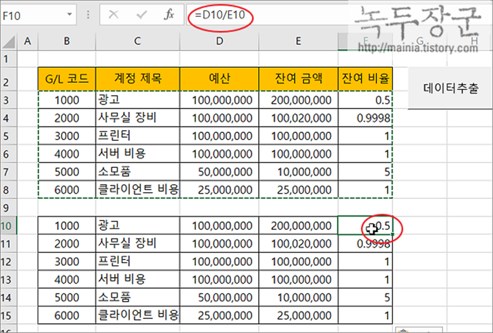 ▼ 일반적인 복사를 진행하는 경우 그림처럼 이전 수식을 그대로 유지합니다.