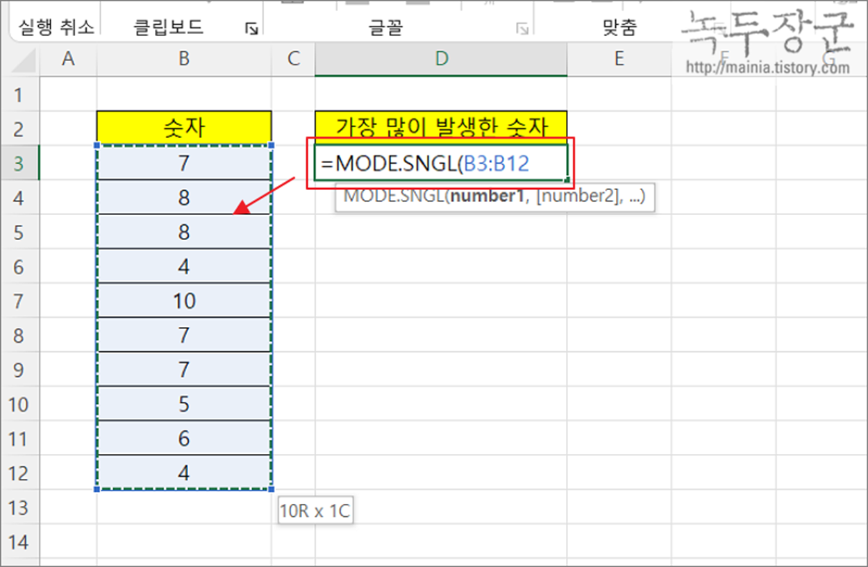 사용자가 지정한 범위에서 가장 많은 빈도로 발생한 숫자를 찾고 싶을 때 MODE 함수를 이용합니다. 통계적으로 가장 자주 발생하는 값을 반환할 때 사용하는데, 최빈값이라 부르기도 합니다. MODE.SNGL 과 MODE.MULT 함수의 차이와 사용법을 알아보겠습니다.