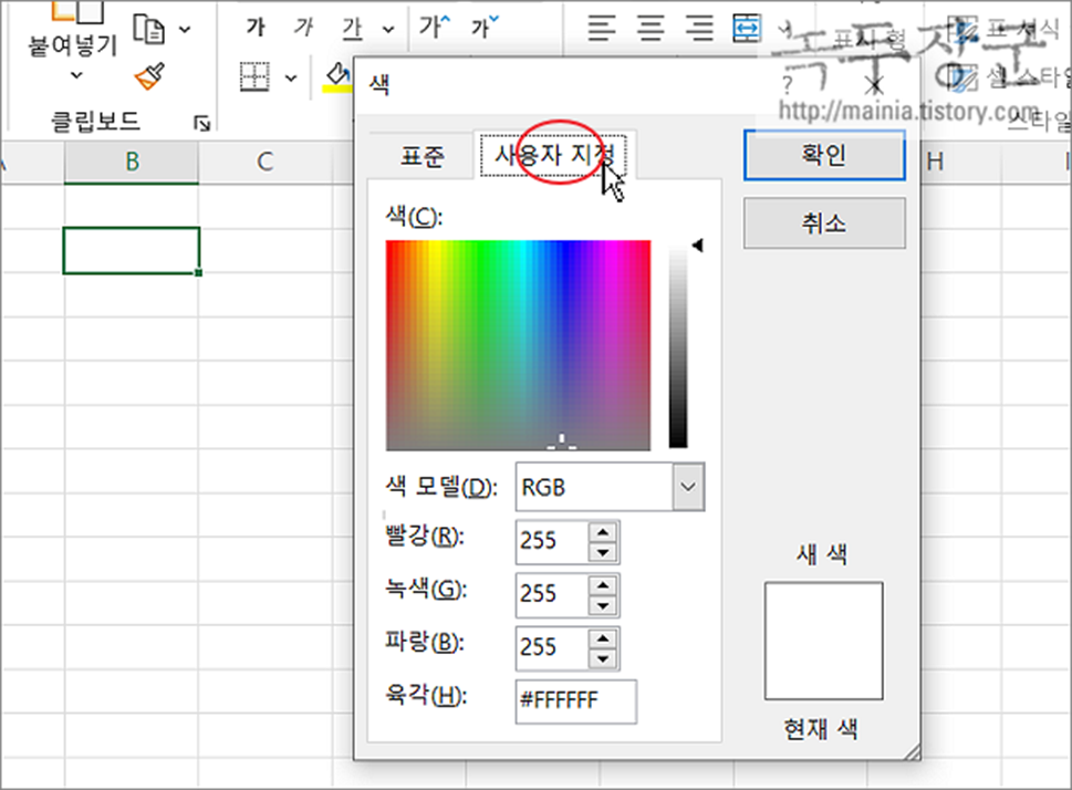 ▼ 다른 색 선택 대화상자에서 사용자 지정 탭으로 이동합니다.