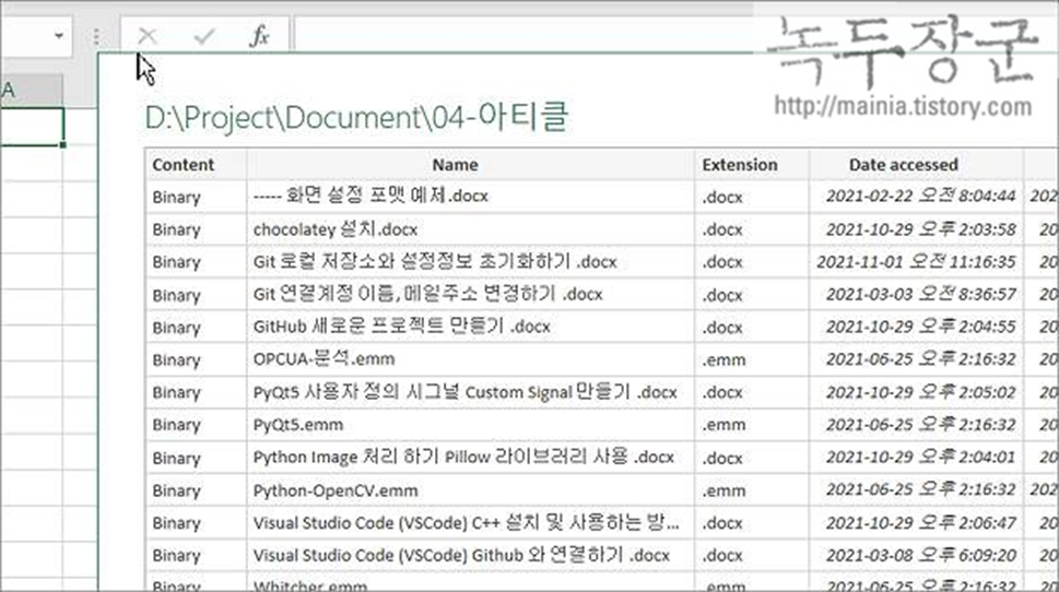 윈도우 탐색기에서 볼 수 있는 파일 목록을 엑셀 시트에 불러오는 방법이 있습니다. 엑셀에서 제공하는 "데이터 가져오기" 기능을 이용하면 간단하게 작업할 수 있습니다. 이것은 폴더 내 파일 목록을 엑셀에 가져와 체계적으로 정리와 관리가 가능합니다. 예를 들어, 파일 이름, 생성 날짜, 수정 날짜, 파일 크기 등의 정보를 엑셀에 정리하여 쉽게 검색하고 분석할 수 있습니다.