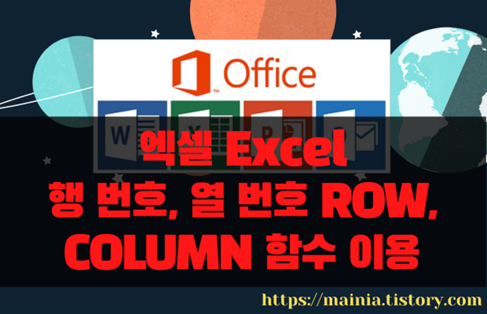엑셀 시트 화면의 왼쪽 숫자와 위쪽 알파벳은 셀을 구분하는 2차원 좌표로 이용합니다. 엑셀에서는 이것을 머리글이라고 합니다. 행 머리글은 숫자이며, 열 머리글은 알파벳입니다. 셀에서 행과 열의 번호를 안다면 위치를 알 수 있겠죠. 행 번호와 열 번호를 구할 때 사용하는 함수는 ROW 와 COLUMN 입니다. 매개변수로 셀을 입력하는 경우 해당 셀의 행/열 번호를 알려주지만 아무것도 입력하지 않아도 현재 위치의 행/열 번호를 반환합니다.