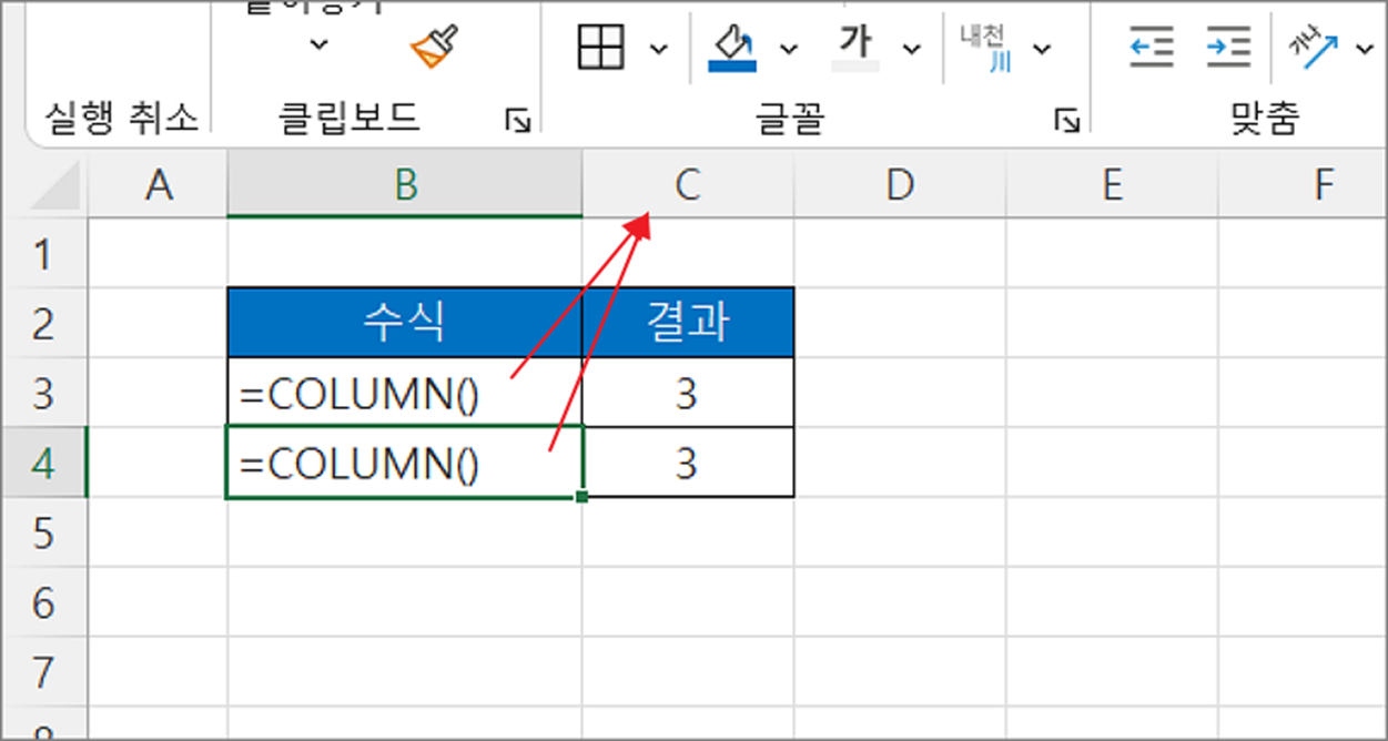▼ COLUMN 함수의 결과는 다음과 같습니다.