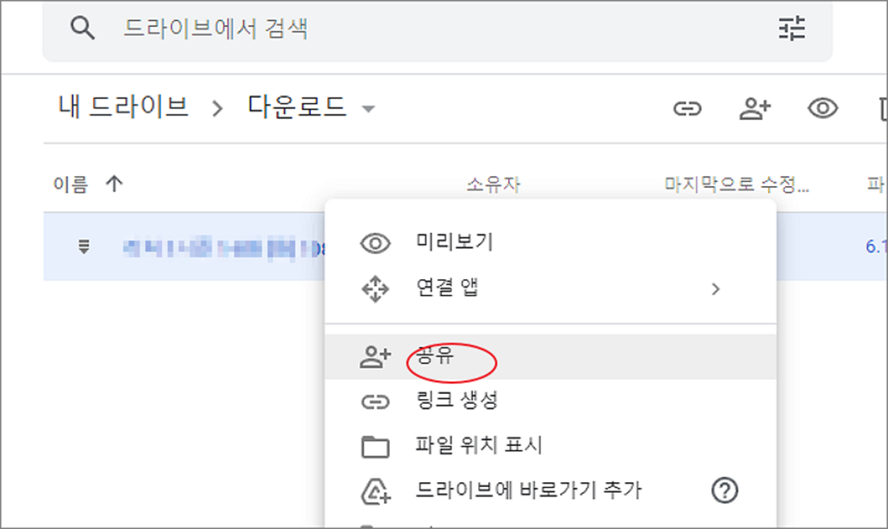 ▼ 이제 올린 파일을 인터넷 공간에서 다운받을 수 있도록 공유 설정을 해 보겠습니다. 파일을 선택하고 오른쪽 마우스를 눌러 팝업창을 띄웁니다. 그리고 공유 메뉴를 클릭합니다.