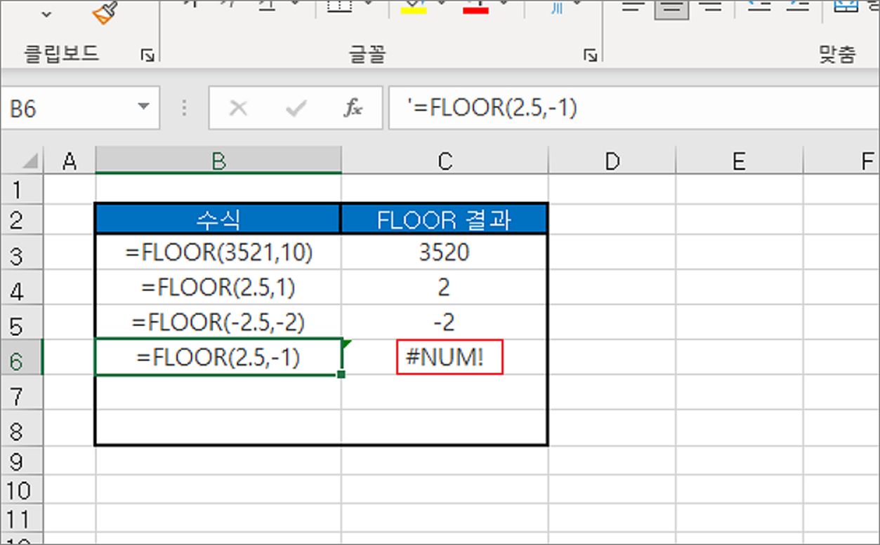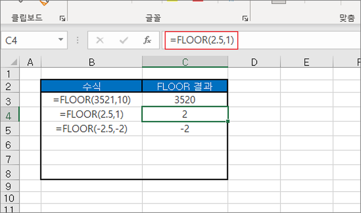 | ◎ FLOOR 함수 사용해서 내림하기 |