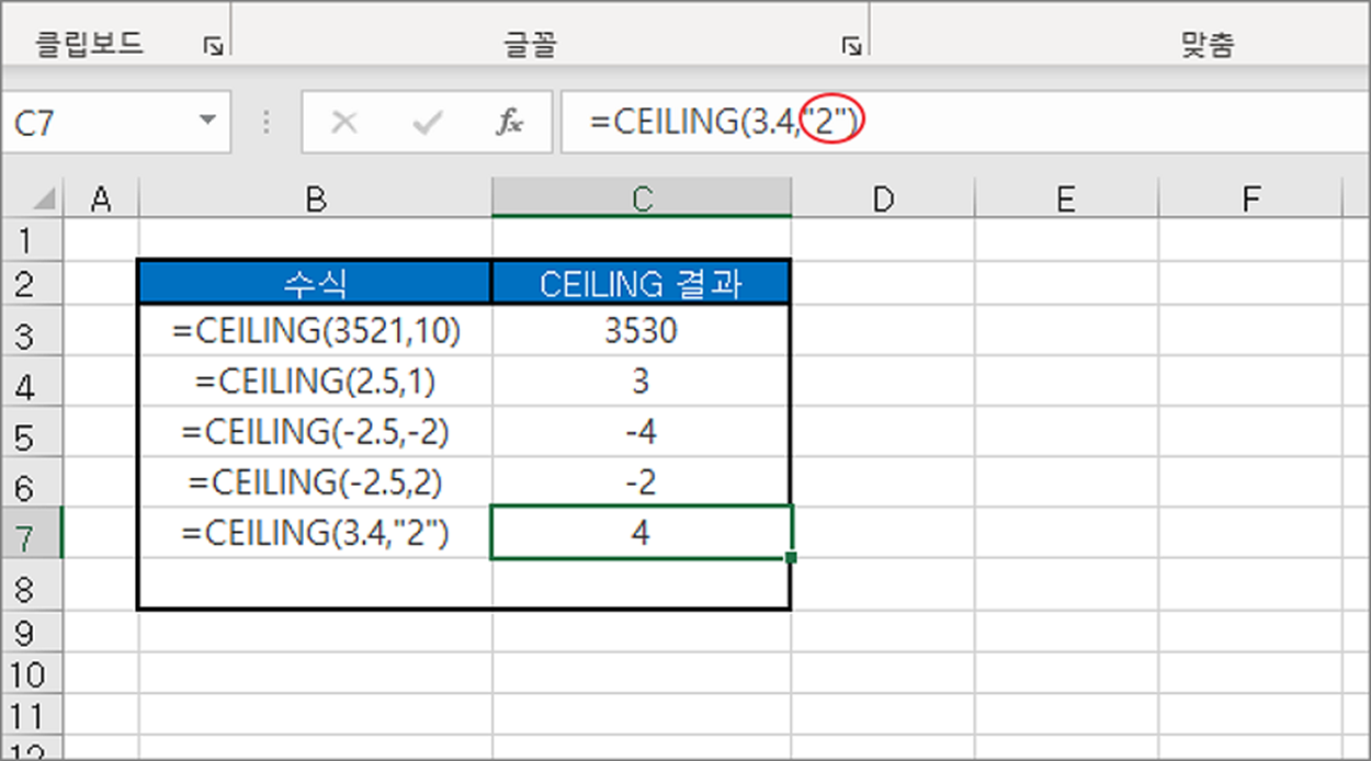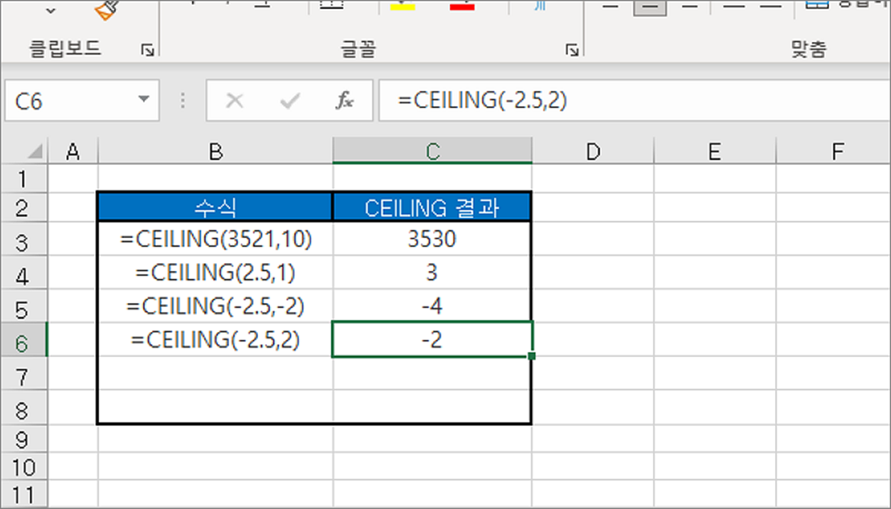 | ◎ CEILING 함수 사용해서 올림하기 |