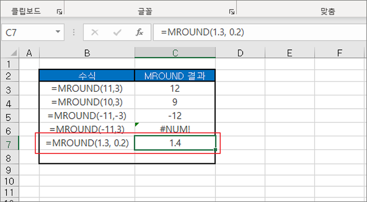 | ◎ MROUND 올림 함수 사용하기 |