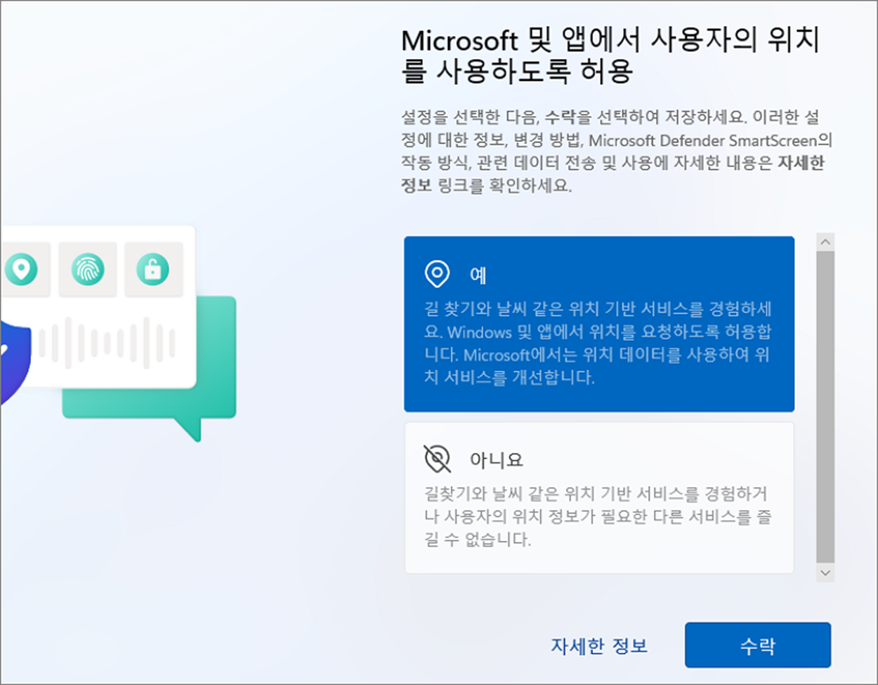 윈도우11 을 처음 설치할 때 MS 계정을 만들어서 로그인하도록 권고합니다. MS 계정은 사용자의 개인 설정 정보와 이용한 서비스가 원드라이브(OneDrive) 와 연계되기 때문에 다양한 혜택을 누릴 수 있습니다. 하지만 반드시 MS 계정이 필요한 것은 아닙니다. 로컬 계정을 만들었다가 설치가 끝나고 MS 계정을 만들어서 로그인을 해도 상관없습니다. 설치 과정에서 MS 계정이 아닌 로컬 계정으로 설치를 마치는 방법을 알아보겠습니다.