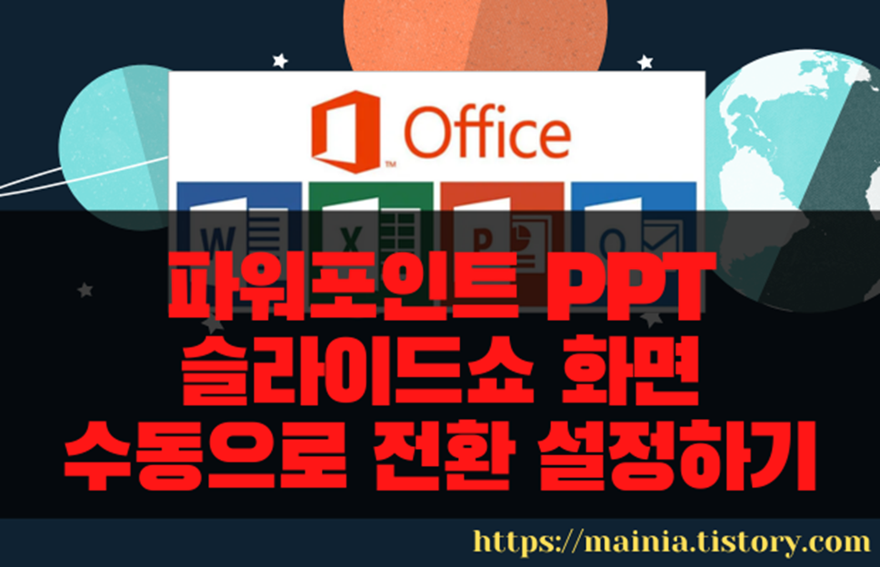 파워포인트 슬라이드 쇼의 기본 설정은 자동 전환입니다. 설정된 시간에 맞춰서 슬라이드가 자동으로 이동합니다. 이것을 마우스 클릭으로 원하는 시점에 수정 전환하는 방법에 대해 알아보겠습니다.