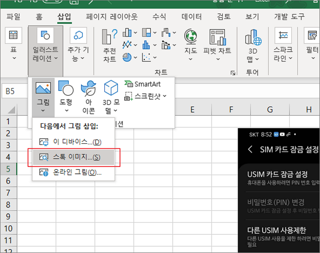 ▼ 두 번째는 스톡 이미지 추가 방법입니다. 스톡 이미지란 오피스 구매자들에게만 제공되는 무료 컨텐츠를 말합니다. 삽입 탭 > 일러스트레이션 > 그림 > 스톡 이미지 리본 메뉴를 선택합니다.