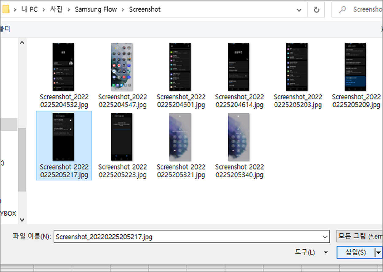 ▼ 대화상자가 뜨면 추가할 이미지를 선택합니다. 그리고 화면 하단에 삽입 버튼을 클릭합니다.