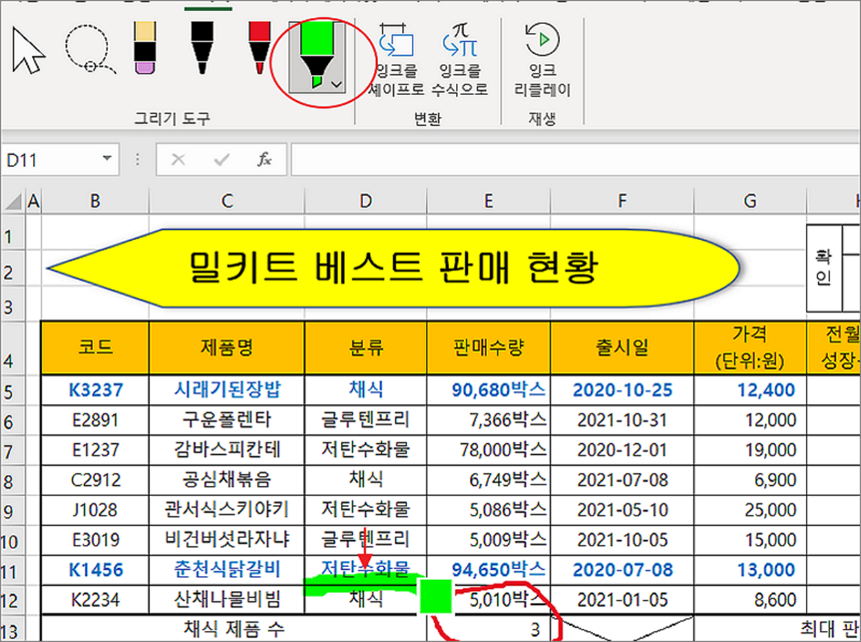 엑셀에서는 파워포인트나 워드처럼 형광펜 또는 펜 기능을 제공합니다. 그림 그리듯이 자유롭게 시트에 표시하고 지우면서 설명하는 도구로 많이 사용합니다. 어떻게 리본 메뉴를 추가하고 사용하는지 간단하게 알아봅니다.