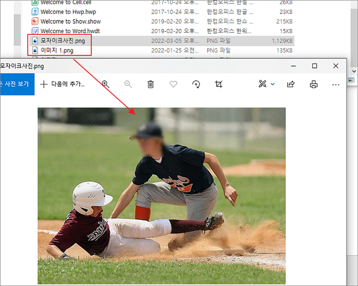 ▼ 저장한 이미지를 열어서 확인해 보세요. 파워포인트로 설정한 모자이크 처리가 제대로 되었는지 확인해 볼 수 있습니다.