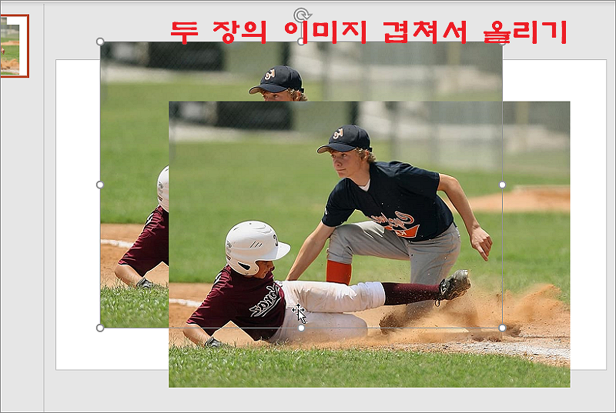 ▼ 먼저 모자이크 처리할 사진을 슬라이드에 추가합니다. 동일한 이미지를 2장 겹쳐서 올려야 합니다.