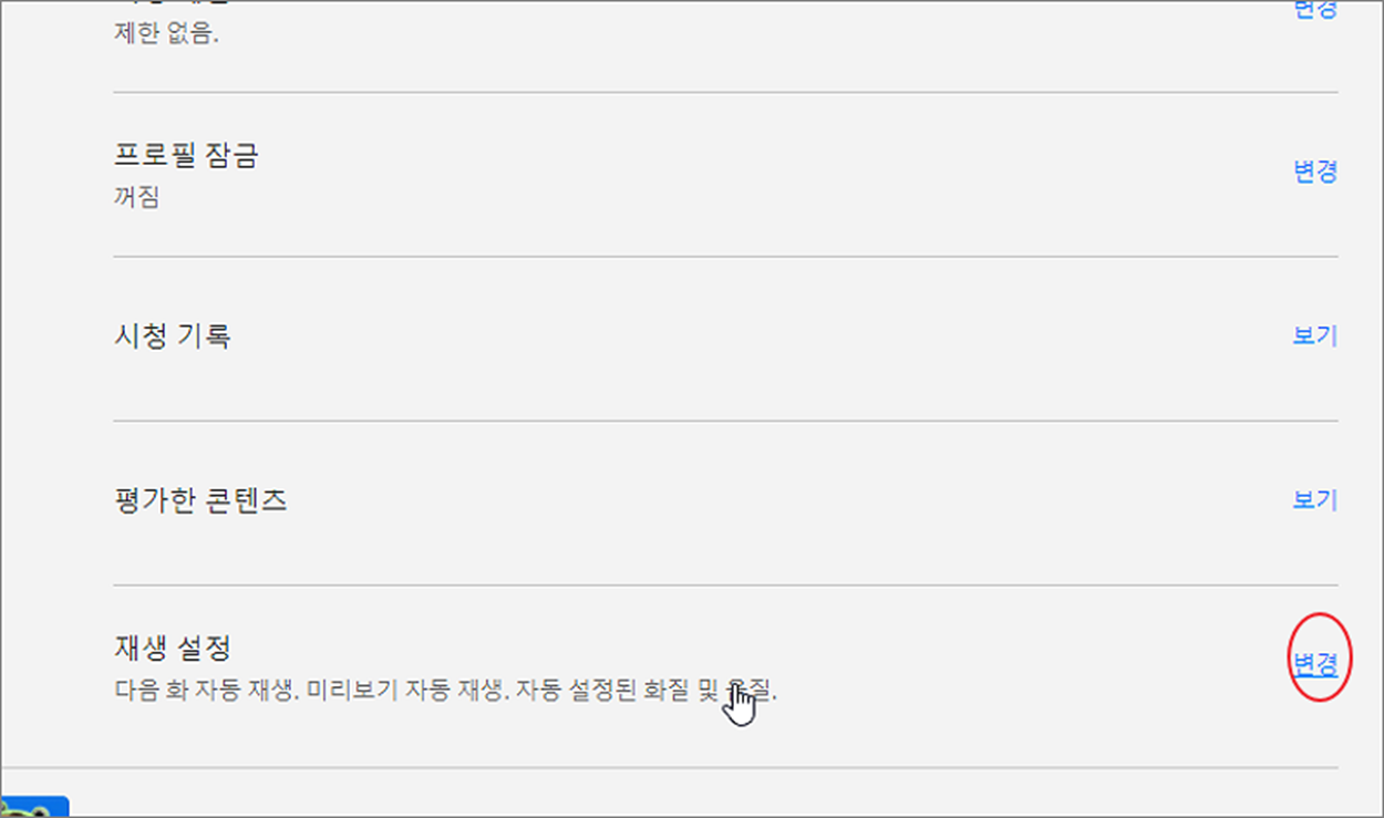 ▼ 프로필 설정 목록에서 제일 아래에서 재생 설정 변경을 클릭합니다.