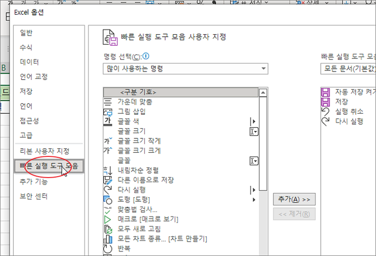 | ◎ 빠른 실행 도구 모음에 셀 병합 등록하기 |
