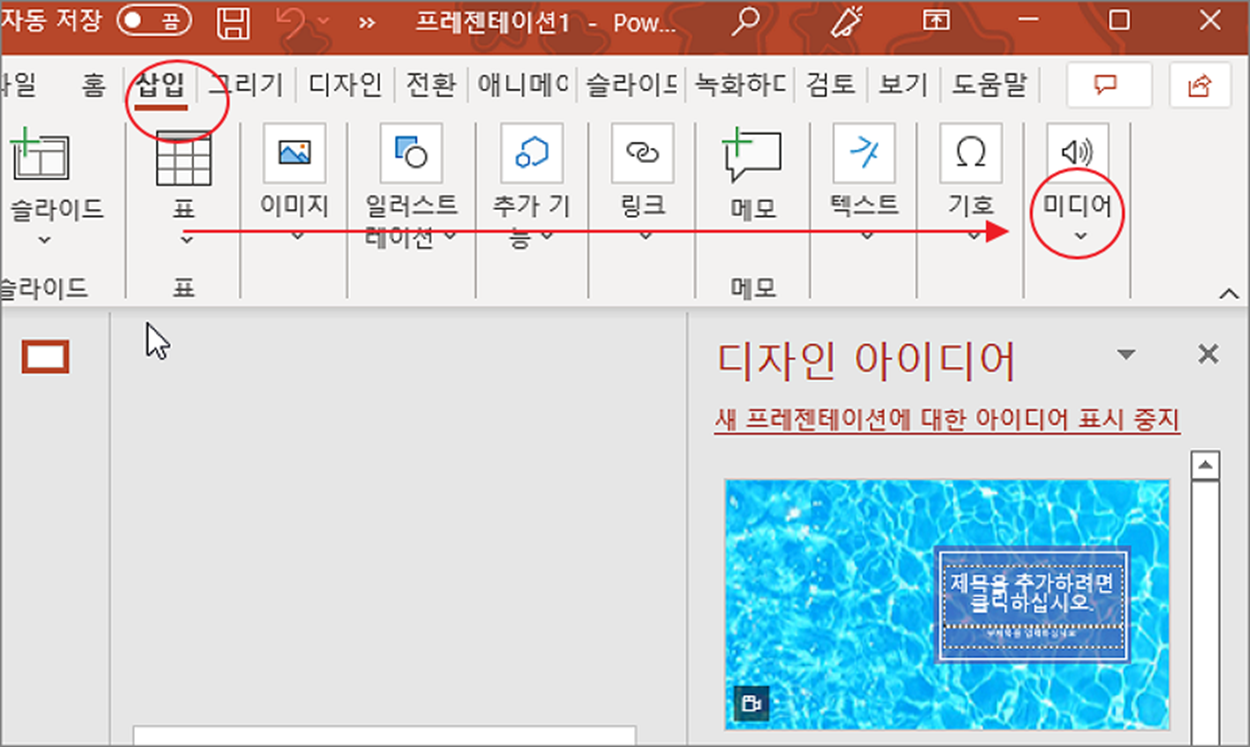 ▼ 화면 녹화 리본 메뉴는 삽입 탭에 있습니다. 삽입 탭 > 미디어 그룹을 클릭해 보세요.