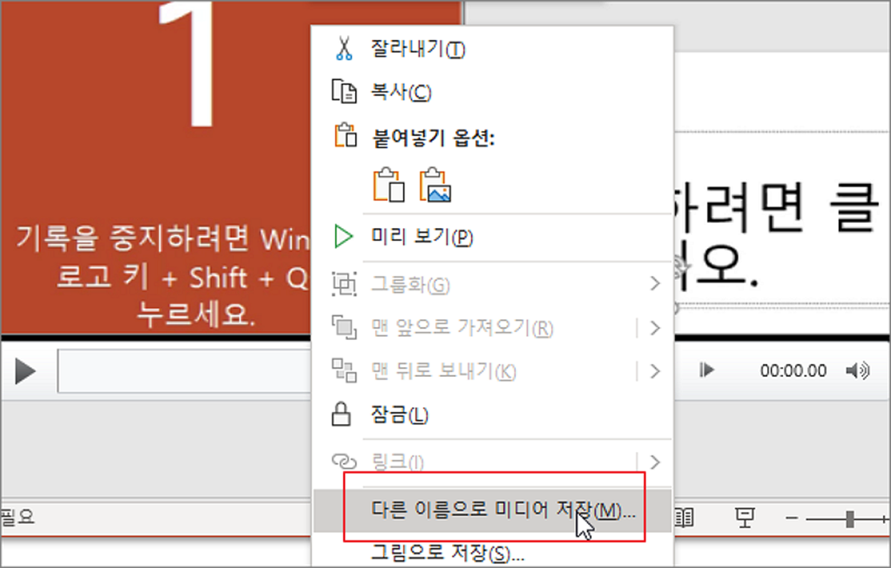 ▼ 해당 동영상을 컴퓨터에 저장하고 싶다면 오른쪽 마우스 클릭 > 다른 이름으로 미디어 저장 메뉴를 선택합니다.