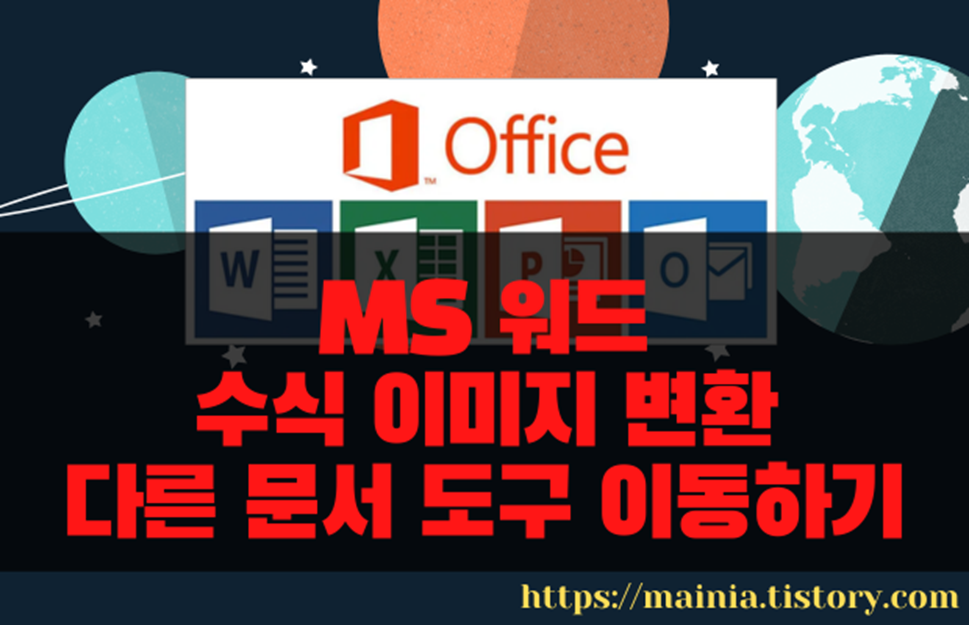 MS 워드에서 수식 도구로 작성한 결과물은 모든 문서 도구와 호환이 되는 것은 아닙니다. 화면에 수식을 표현하기 위한 내부 언어가 틀릴 수 있기 때문입니다. 물론 오피스 제품군 사이는 복사/붙여넣기 옮길 수는 있습니다. 만약 호환되지 않는 곳에 수식을 옮기고 싶다면 이미지로 저장된 수식을 활용해 보세요.