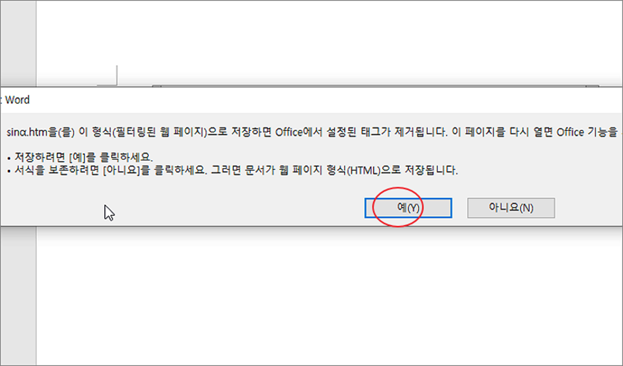 ▼ HTML 로 저장할 때 다음과 같은 경고 메시지가 나타나면 예 를 눌러 진행합니다.