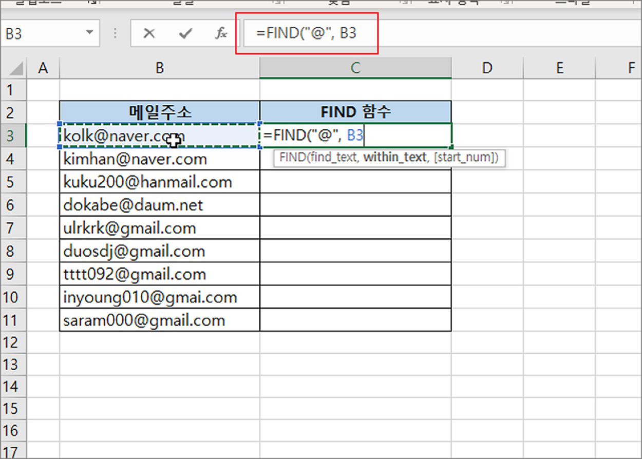 | ◎ 1. FIND 함수 사용하기 |