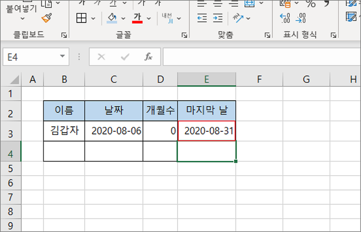 ▼ 계산한 결과는 아래와 같습니다. 입력한 날짜의 마지막 날은 31일 이네요.