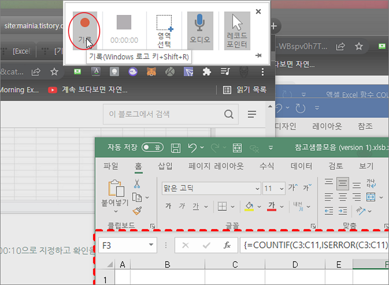 ▼ 녹화시작을 위해 화면 상단에 있는 메뉴바로 갑니다. 그리고 왼쪽 끝에 있는 기록 버튼을 클릭합니다.
