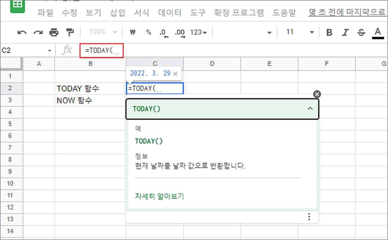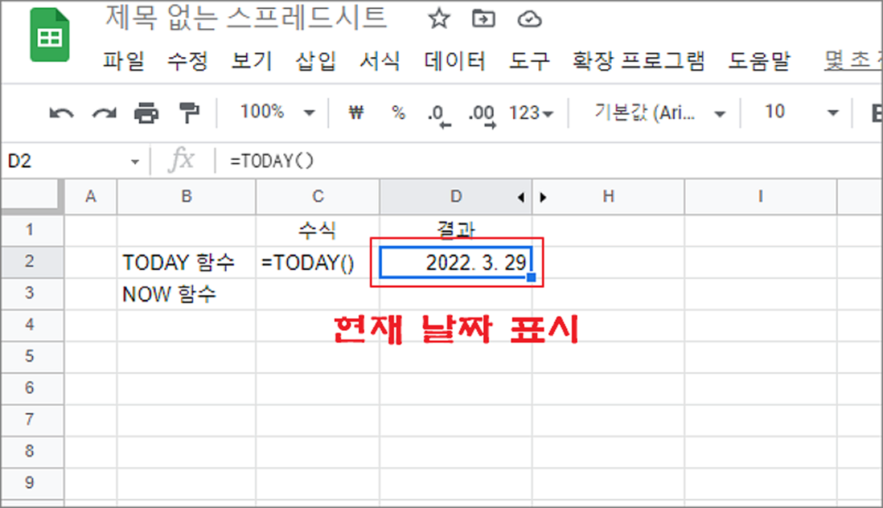 현재 날짜를 표현하는 함수는 TODAY 와 NOW 함수가 있습니다. 매개변수는 없으며, 컴퓨터 시간을 표시합니다. 간단하게 사용법과 관련 설정을 알아보겠습니다.