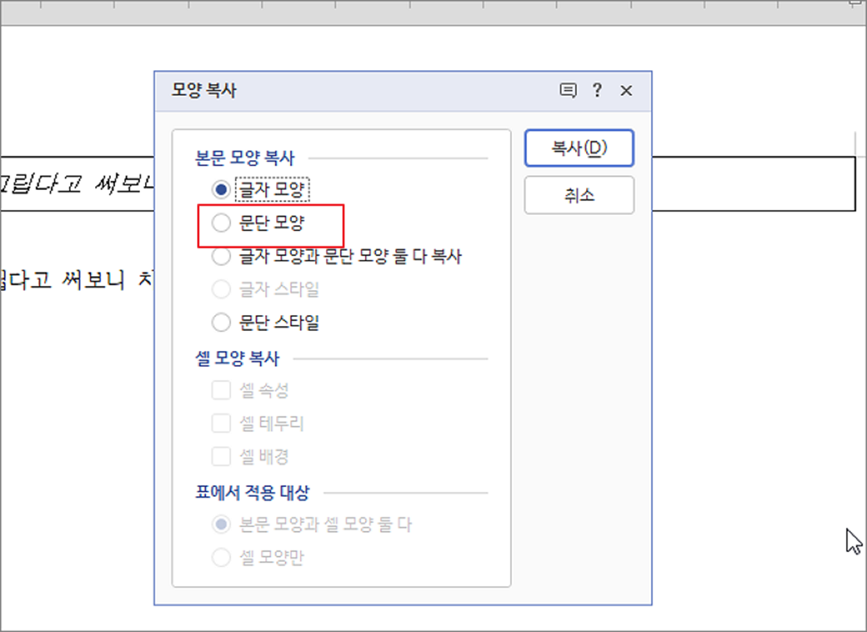 | ◎ 문단 모양 복사하기 |