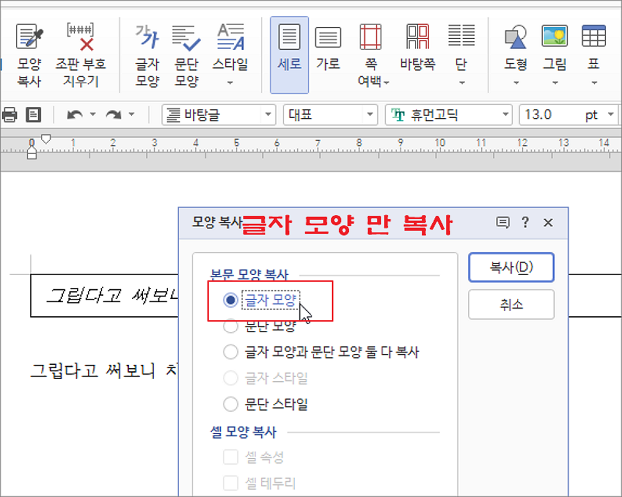 | ◎ 글자 모양 복사하기 |