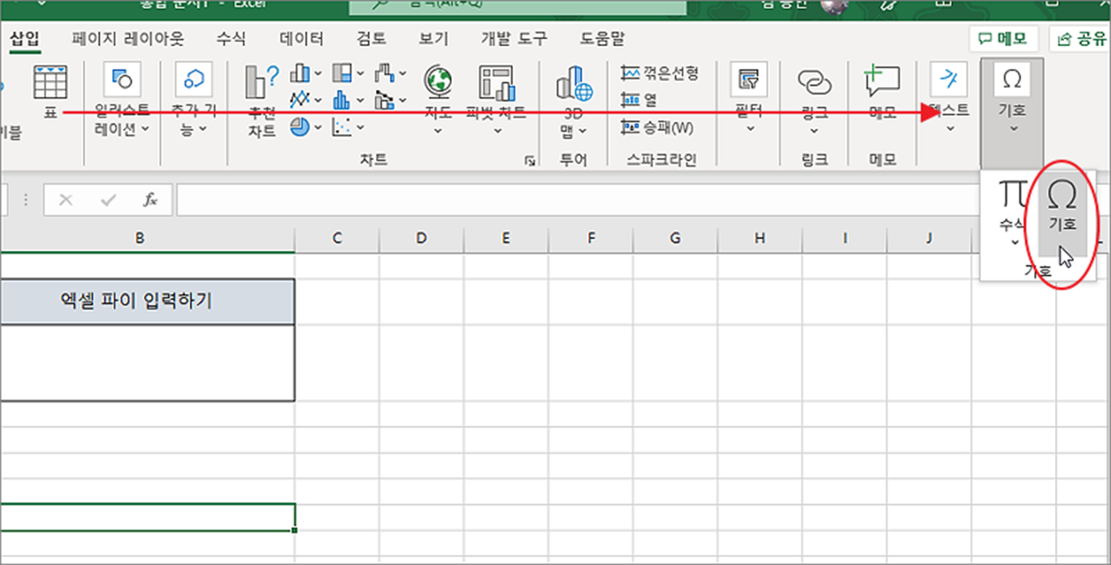 | ◎ 기호 입력창에서 파이 추가하기 |
