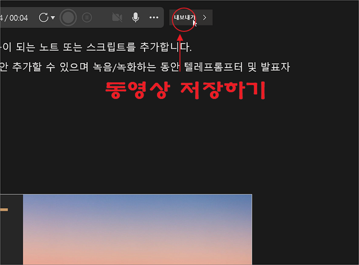 ▼ 녹화가 끝났다면 동영상으로 저장해야 합니다. 툴바 오른쪽 끝으로 가서 내보내기 버튼을 클릭합니다.