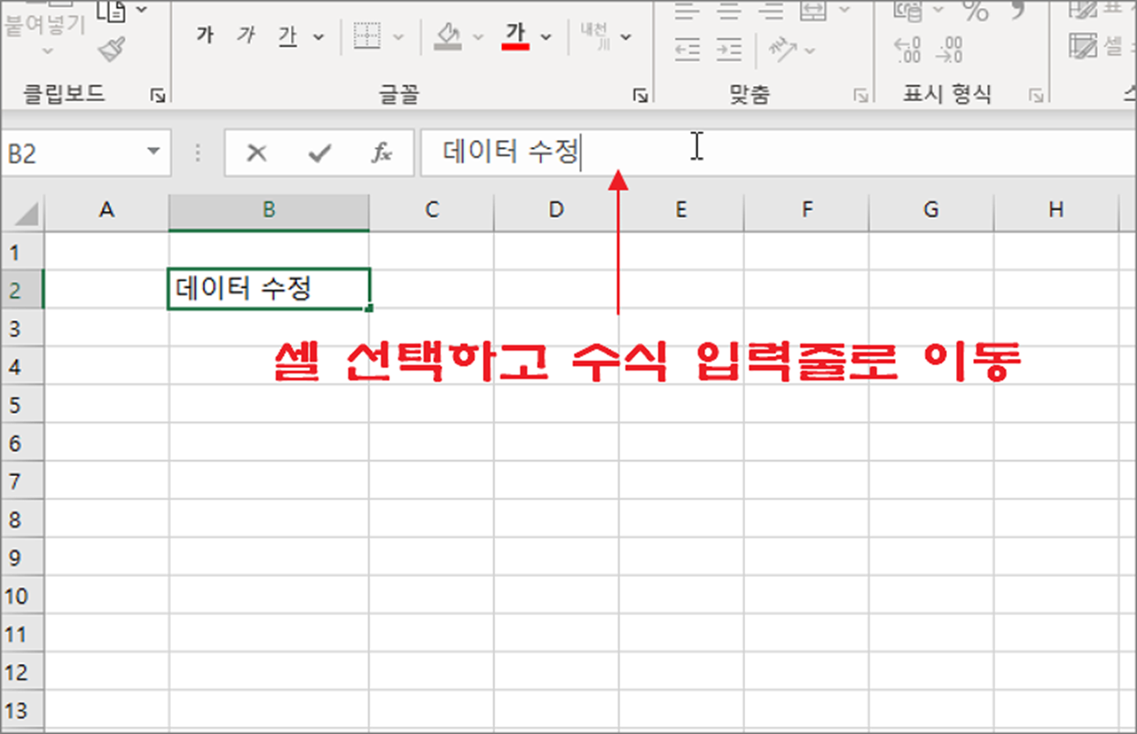 ▼ 두 번째는 입력할 셀을 선택하고 “수식 입력줄” 에서 데이터를 입력하는 방법입니다.
