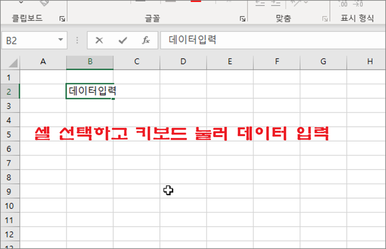 ▼ 첫 번째 입력 방법은 셀을 선택하고 원하는 데이터 입력을 위해 키를 입력하는 것입니다.