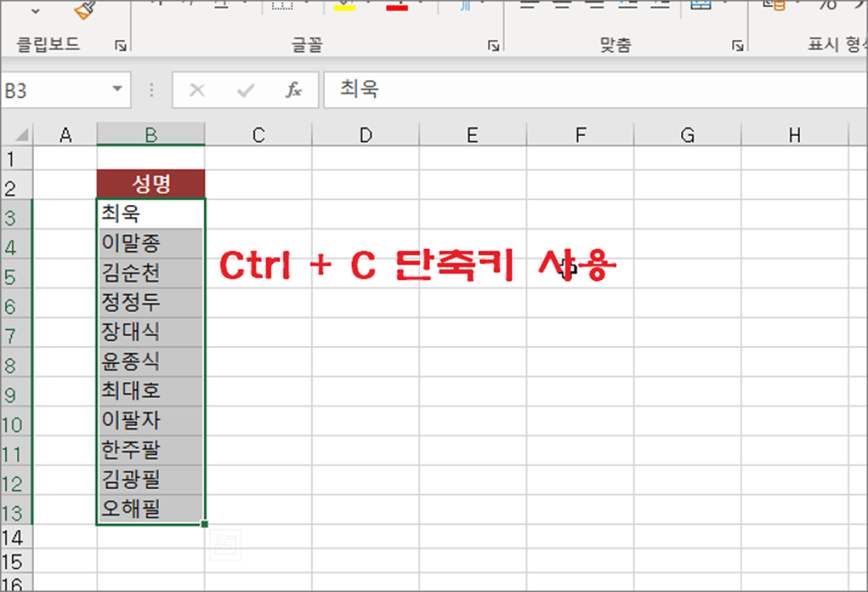 ▼ 세 번째는 단축키를 이용한 방법입니다. 복사는 Ctrl + C 입니다.