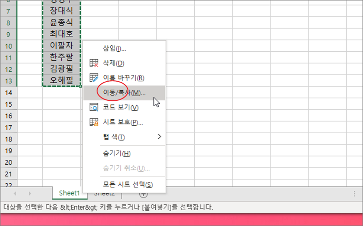 | ◎ 시트간 이동/복사 기능 사용하기 |