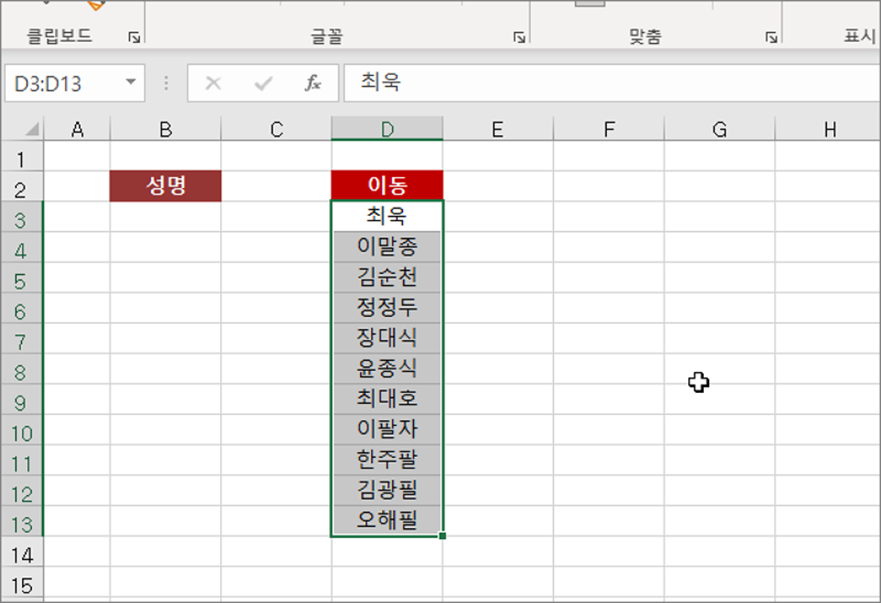 ▼ 클립보드에 잘라내기/붙여넣기 단축키는 Ctrl + X 와 Ctrl + V 입니다. 리본메뉴를 이용하는 것과 같습니다.
