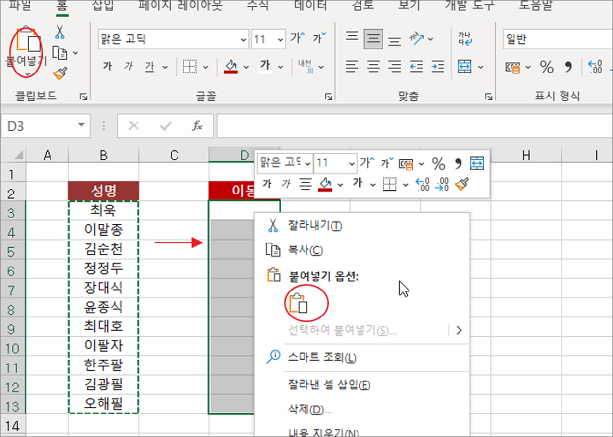 ▼ 다음은 데이터를 옮길 곳으로 이동해서 오른쪽 마우스 > 붙여넣기 메뉴를 클릭합니다.