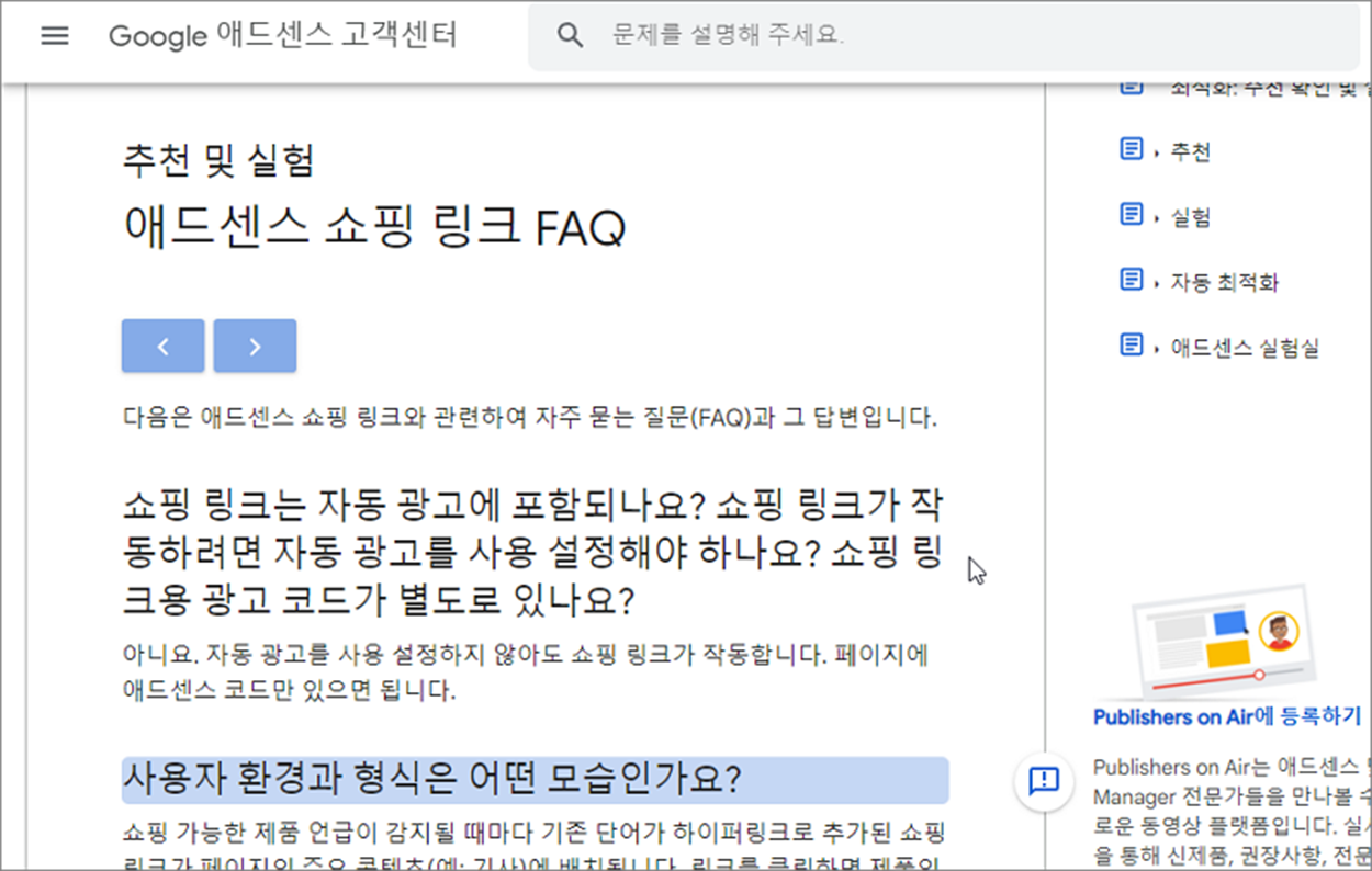 ▼ 먼저 쇼핑링크에 관한 구글 애드센스 설명페이지를 방문해 봅니다. 링크를 통해 접속한 고객센터에서 쇼핑링크에 대한 상세 정보를 확인할 수 있습니다.