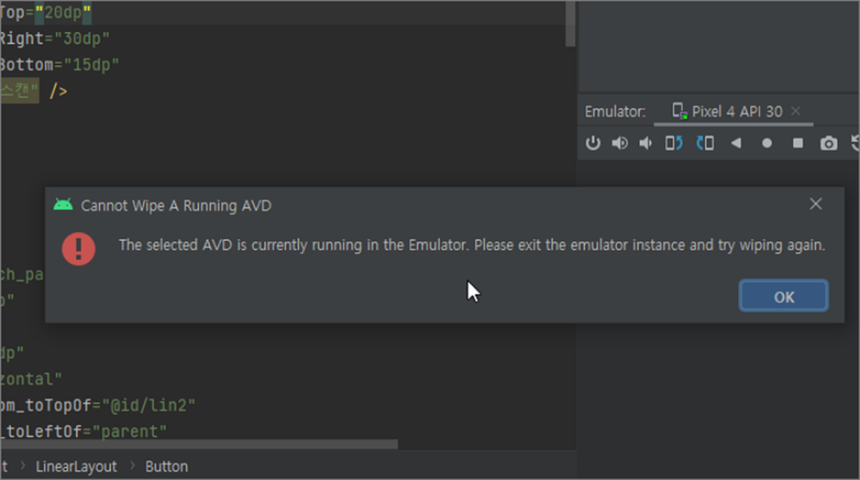 | 안드로이드 스튜디오 AVD is already running 오류 해결하기 (1) | 2023.11.12 |