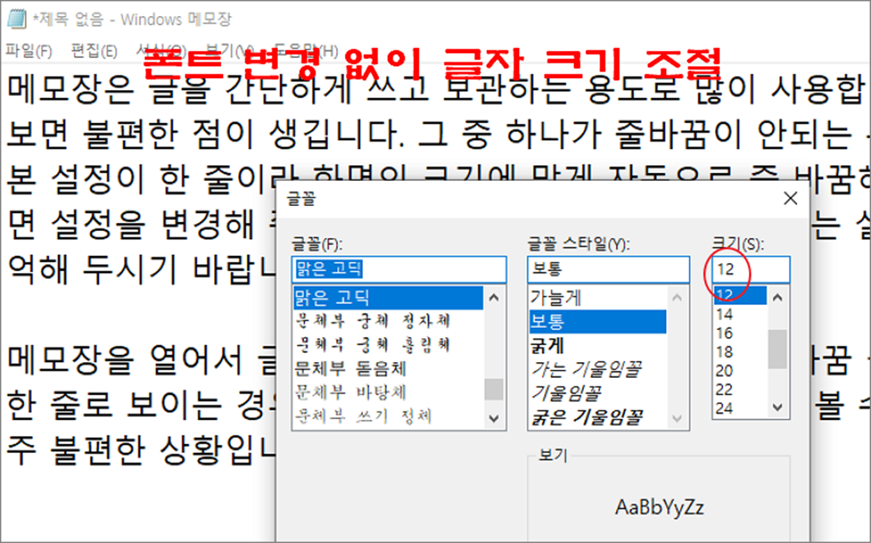 ▼ 그림처럼 글자의 크기는 확대가 되었는데, 글꼴의 크기는 그대로 입니다.