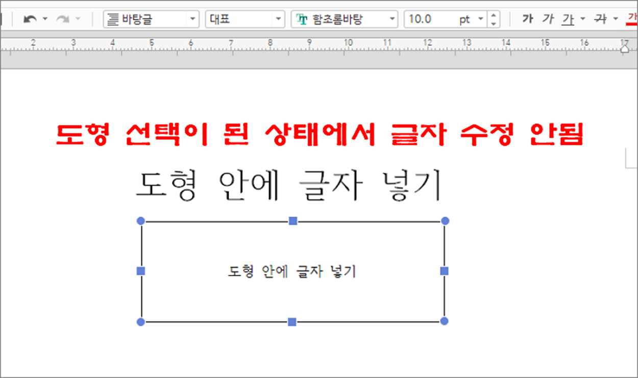 보통 한글에서 네모난 박스에 글을 입력할 때는 글박스를 이용합니다. 그럼 이미 추가한 도형에 글을 입력하고 싶다면 어떻게 해야 할까요? 지우고 다시 글박스를 추가한 후 이전 도형 모양으로 변경해야 될까요?