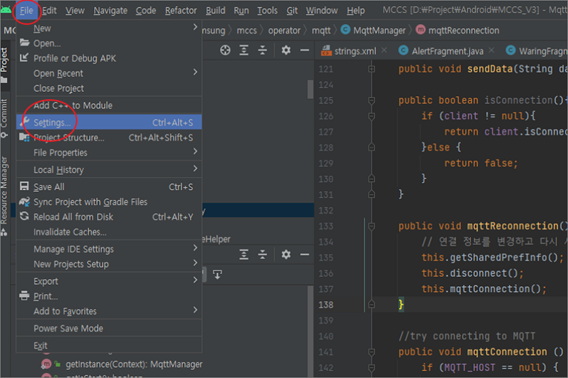 ▼ 우선 플러그인 설치 화면으로 이동해 보겠습니다. 플러그인 설치를 위해서 파일 > Settings 메뉴를 선택합니다.