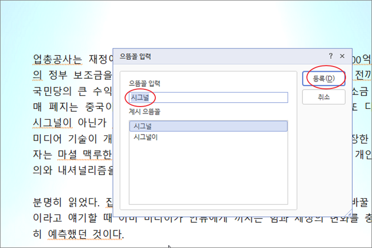 | ◎ 사전에 단어 추가해서 빨간 줄 없애기 |