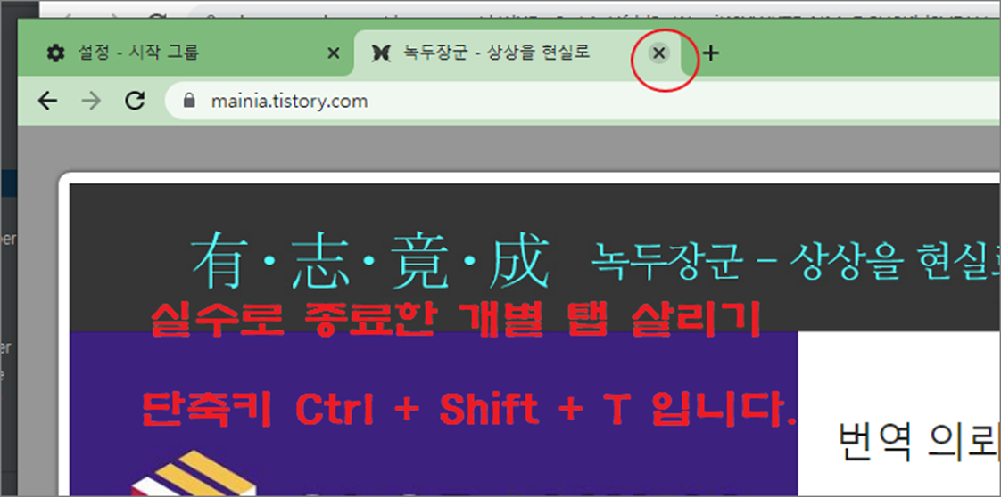 ▼ 그림처럼 크롬에서 탭을 유지하고 있다가 브라우저를 닫고 다시 시작했다고 합시다.