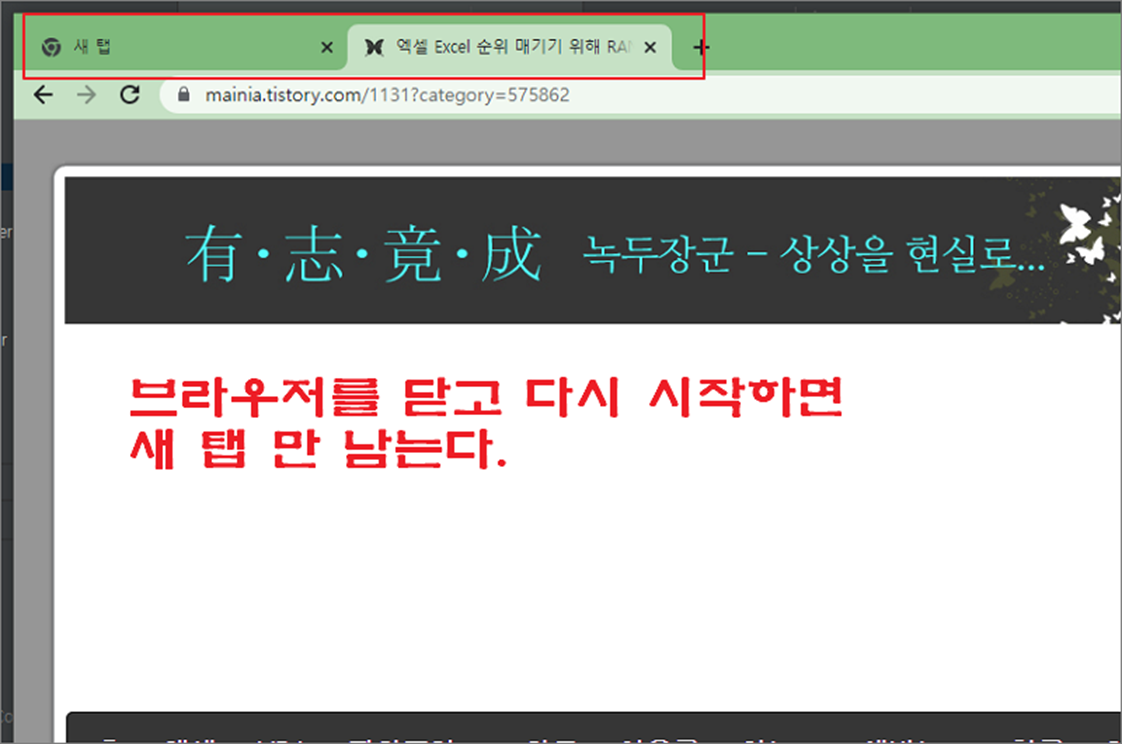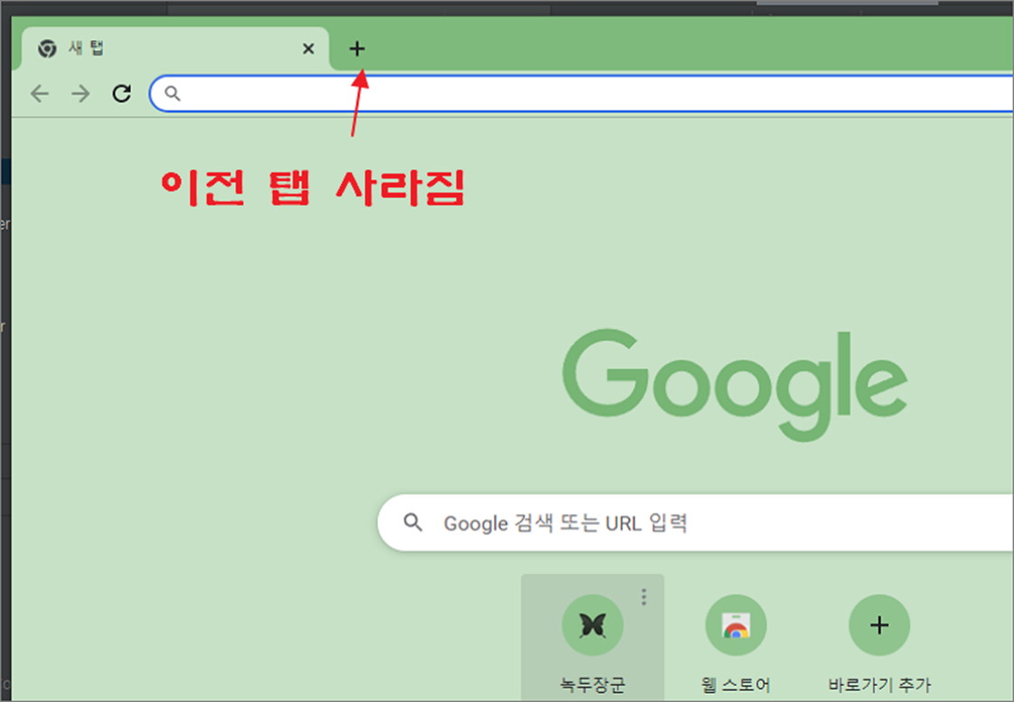 ▼ 크롬 브라우저의 기본 설정은 이전 탭을 유지하지 않습니다. 그림처럼 새 탭만 있고 사라졌을 겁니다.