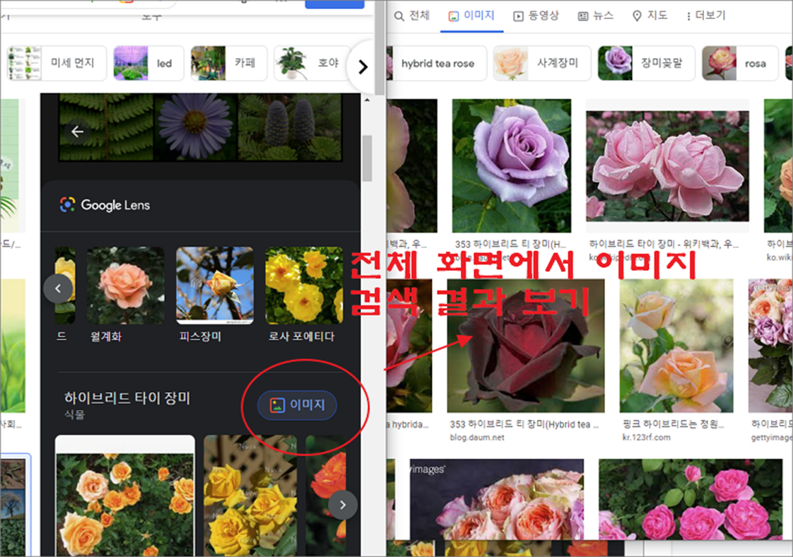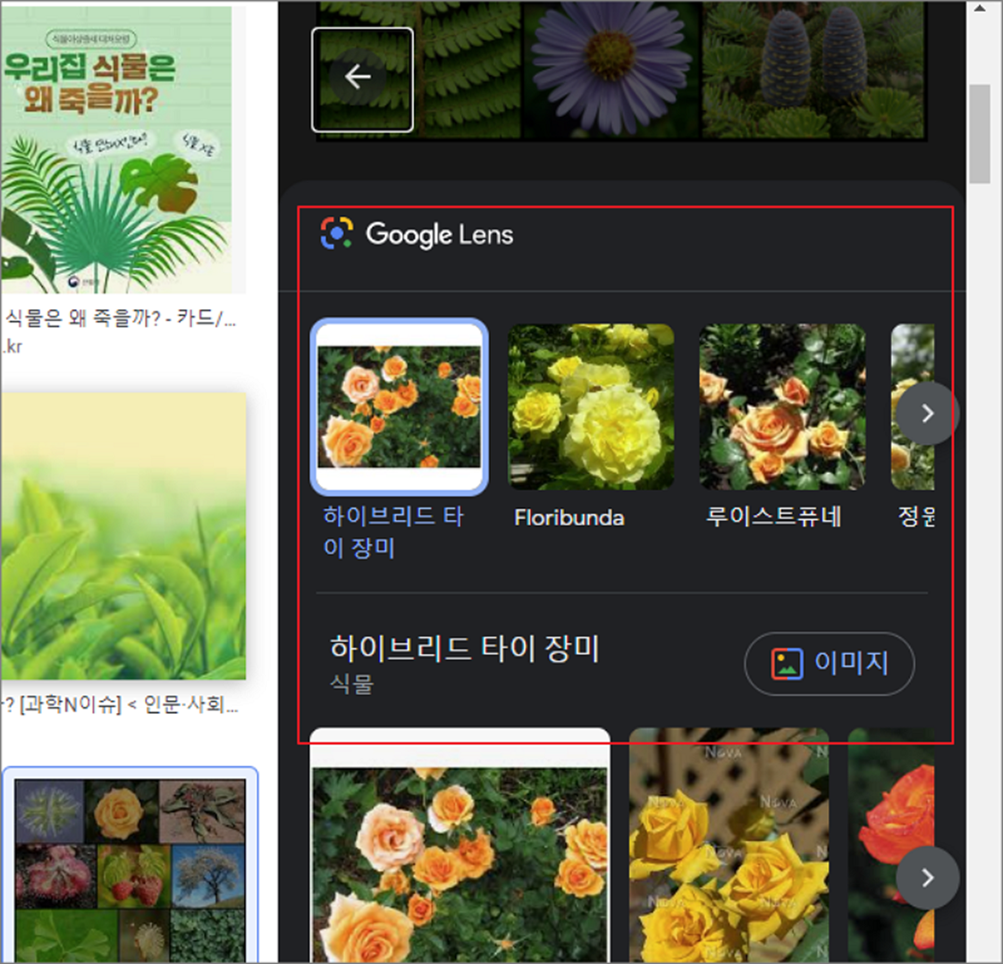 ▼ 이미지 아래에 렌즈로 검색한 결과가 나타납니다.