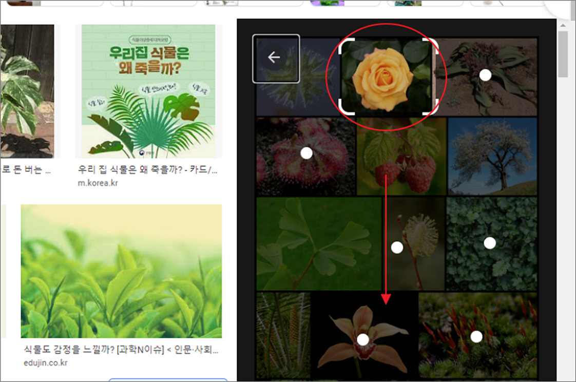 ▼ 그림처럼 렌즈 크기를 검색하고 싶은 특정 영역에 맞춘 후 결과를 보기 위해 아래로 이동합니다. 검색은 렌즈 크기를 맞추고 마우스를 떼는 순간 이루어집니다.