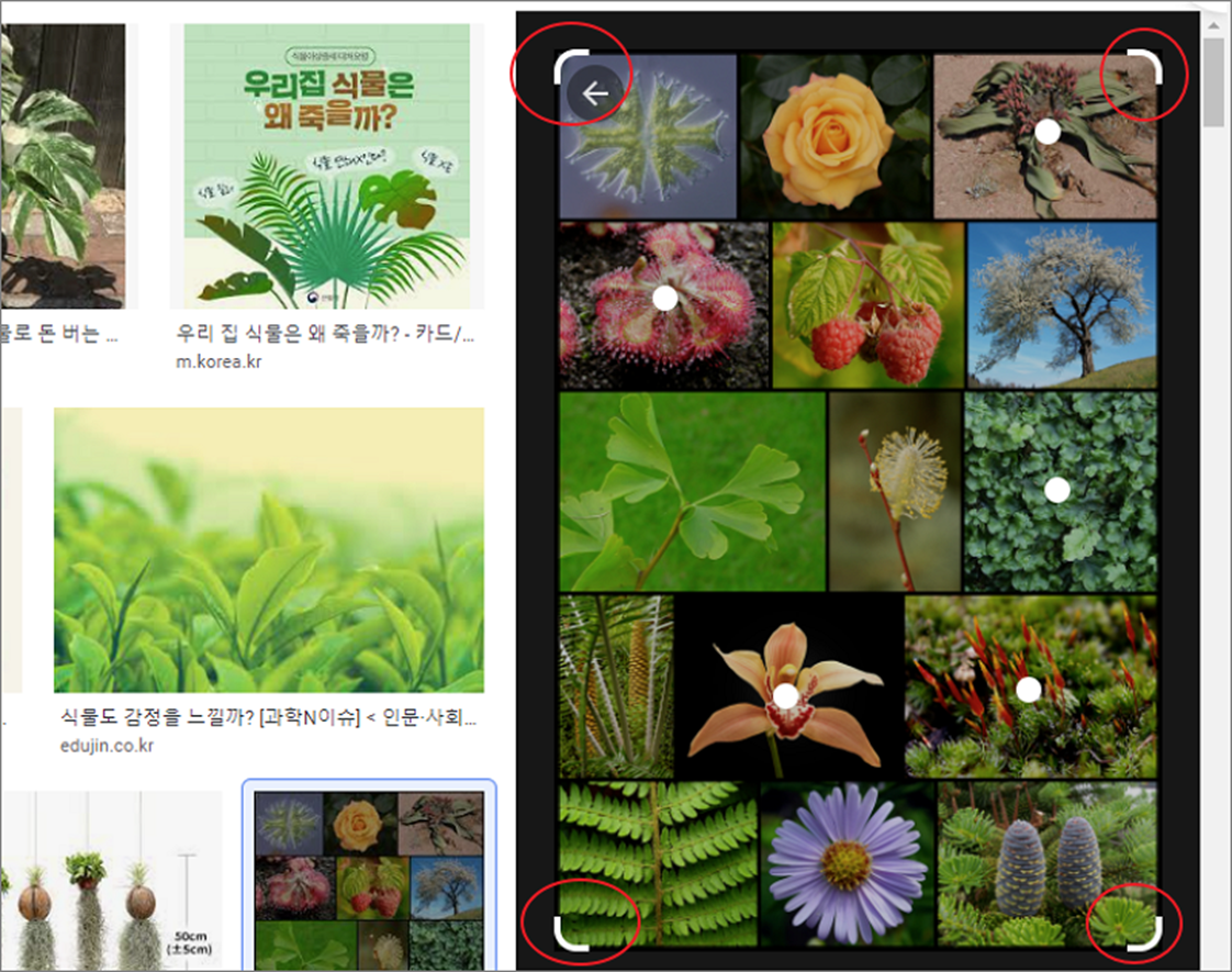 ▼ 렌즈 모양의 아이콘을 클릭하면 4각형 박스가 이미지 위에 나타납니다. 각 모서리에 컨트롤 바를 움직여서 전체 렌즈 사각형 크기를 조절할 수 있습니다. 자신이 검색하고 싶은 이미지에 렌즈의 크기를 맞춥니다.